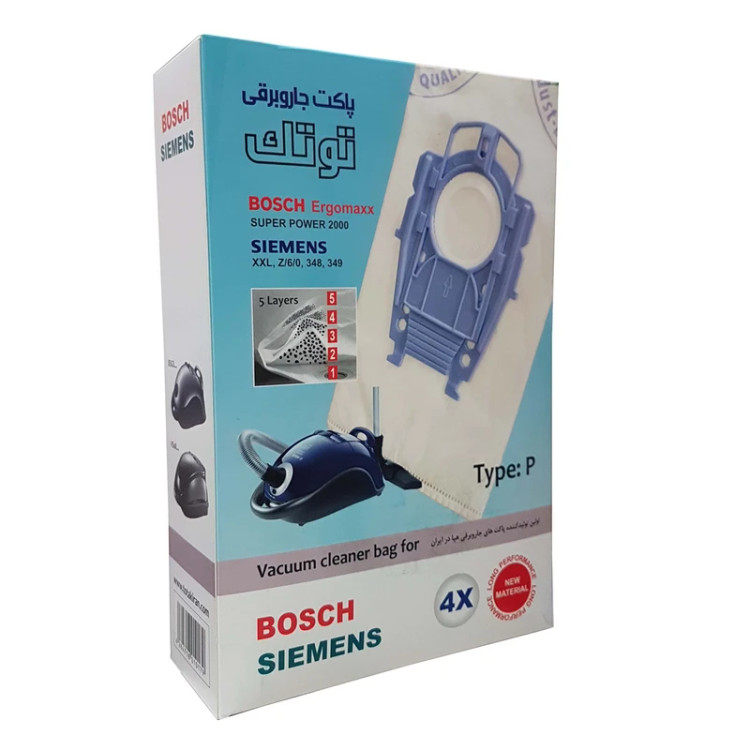 این پاکتها به طور خاص برای جاروبرقیهای بوش و زیمنس طراحی شدهاند و مناسب مدلهای زیر هستند: زیمنس SUPER POWER زیمنس 2000 زیمنس XXL مدلهای Z/6/0 مدلهای 348 و 349: .